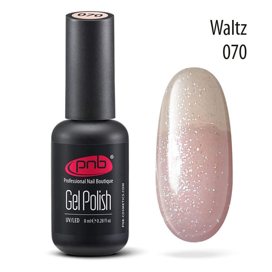 Нежно-персиковый цвет с глиттером, можно использовать как основа под французский маникюр. Гель лак бренда PNB это высококачественный продукт с хорошим гипоаллергенным составом и формулой 7 FREE. Гель лаки американского производства и имеют международный европейский сертификат качества. Большинство оттенков разработано по новейшей формуле которая позволяет наносить в один выравнивающий слой. Время полимеризации в LED лампе 30 секунд, в UV лампе 2 минуты. В процессе выработки лампочек в лампе понижается мощность и нужно увеличивать время просушки.