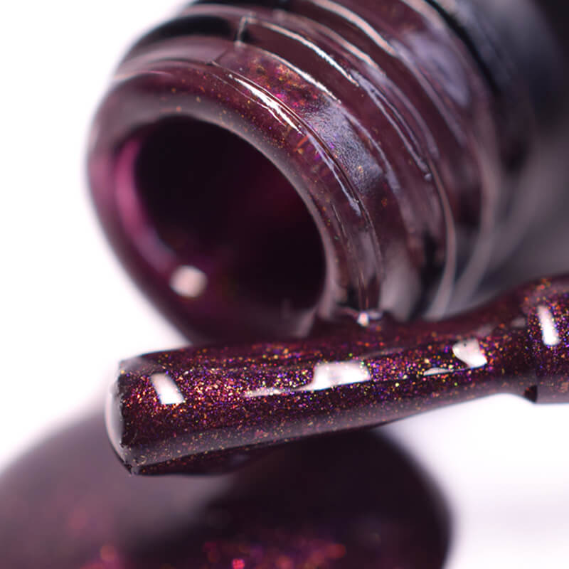 Темно-сливовий гель-лак з золотистим мікроблиском. Гель лак бренду PNB це високоякісний продукт з хорошим гіпоалергенним складом і формулою 7 FREE. Гель лаки американського виробництва і мають міжнародний європейський сертифікат якості. Більшість відтінків розроблено за новітньою формулою яка дозволяє наносити в один вирівнюючий шар. Час полімерізації в LED лампі 30 секунд, в UV лампі 2 хвилини. У процесі вироблення лампочок в лампі знижується потужність і потрібно збільшувати час просушування.